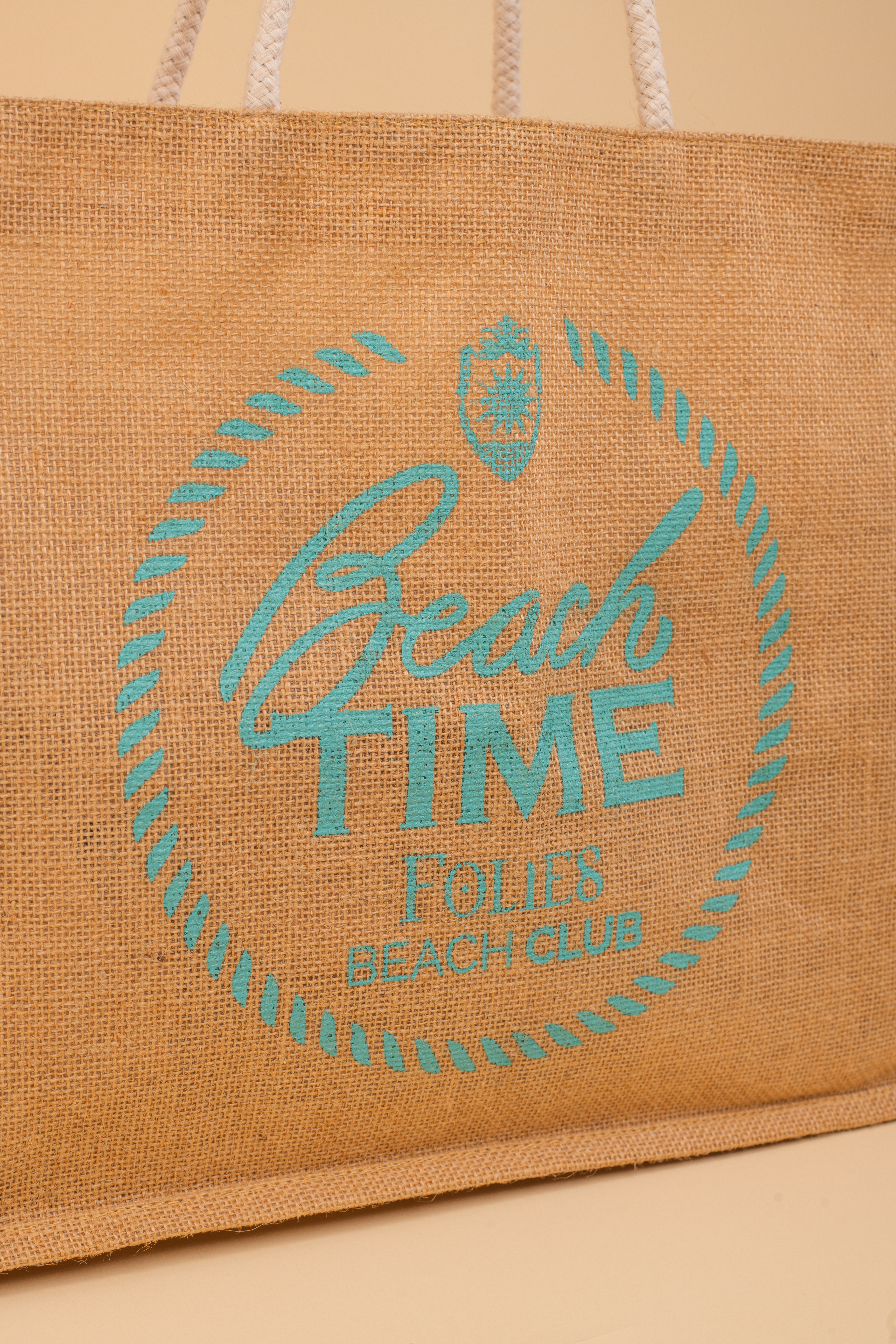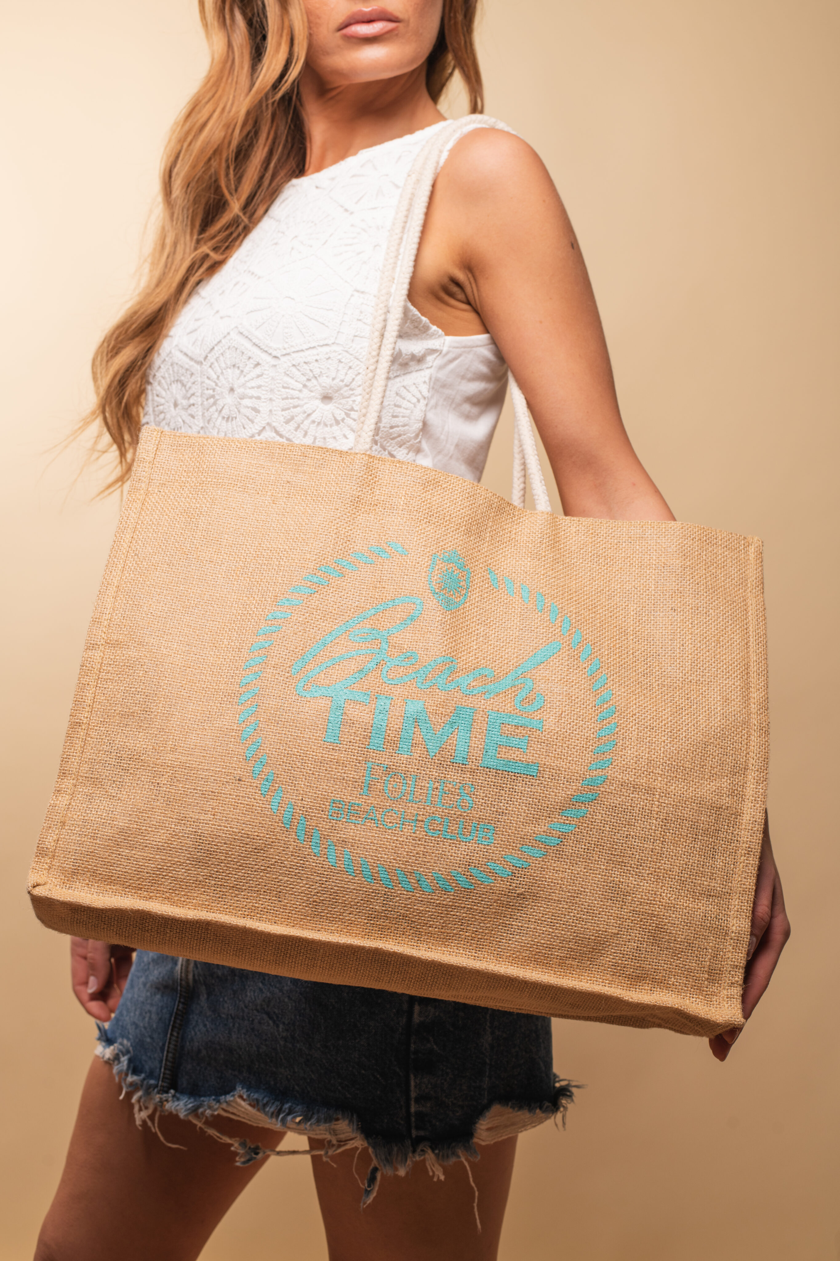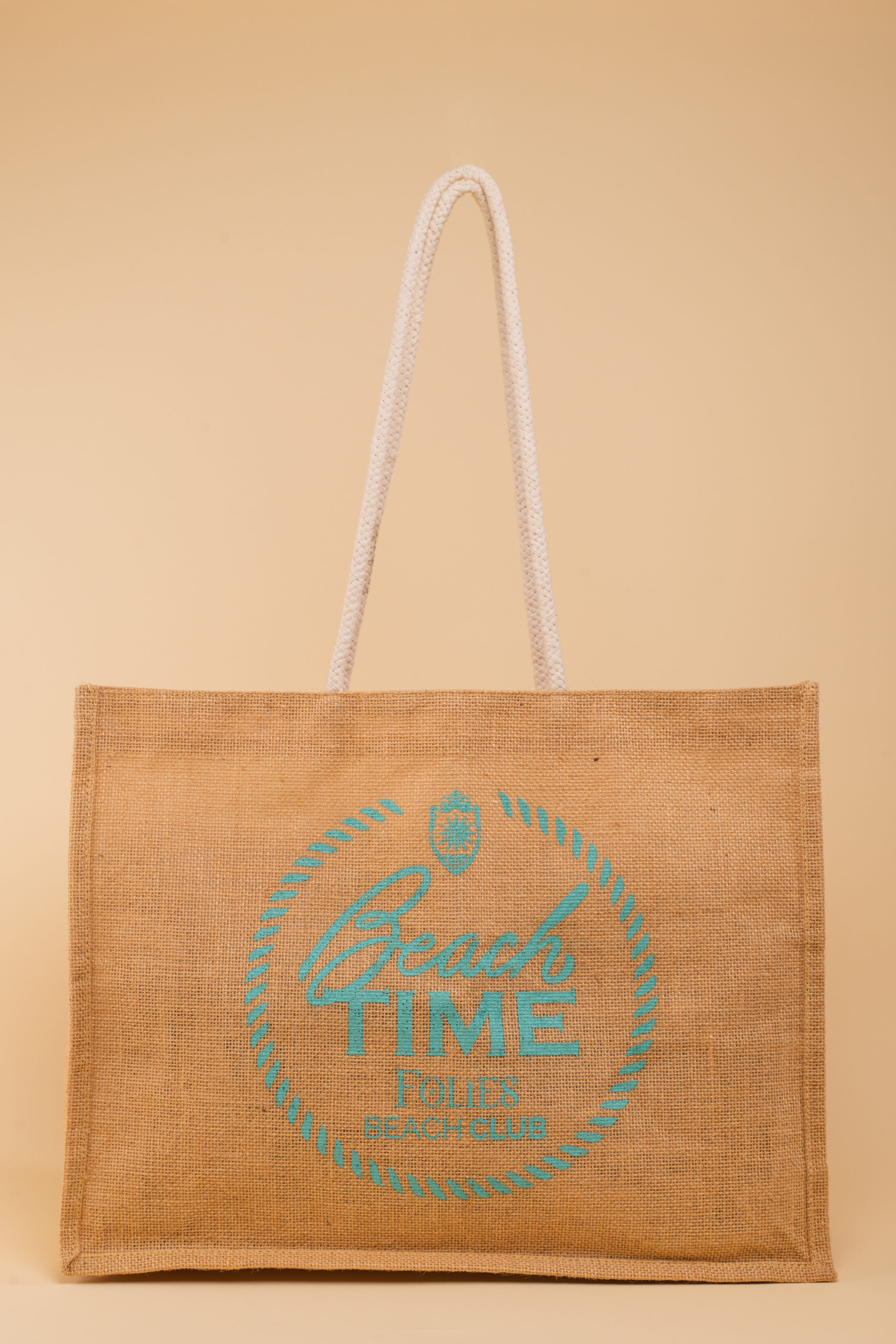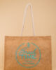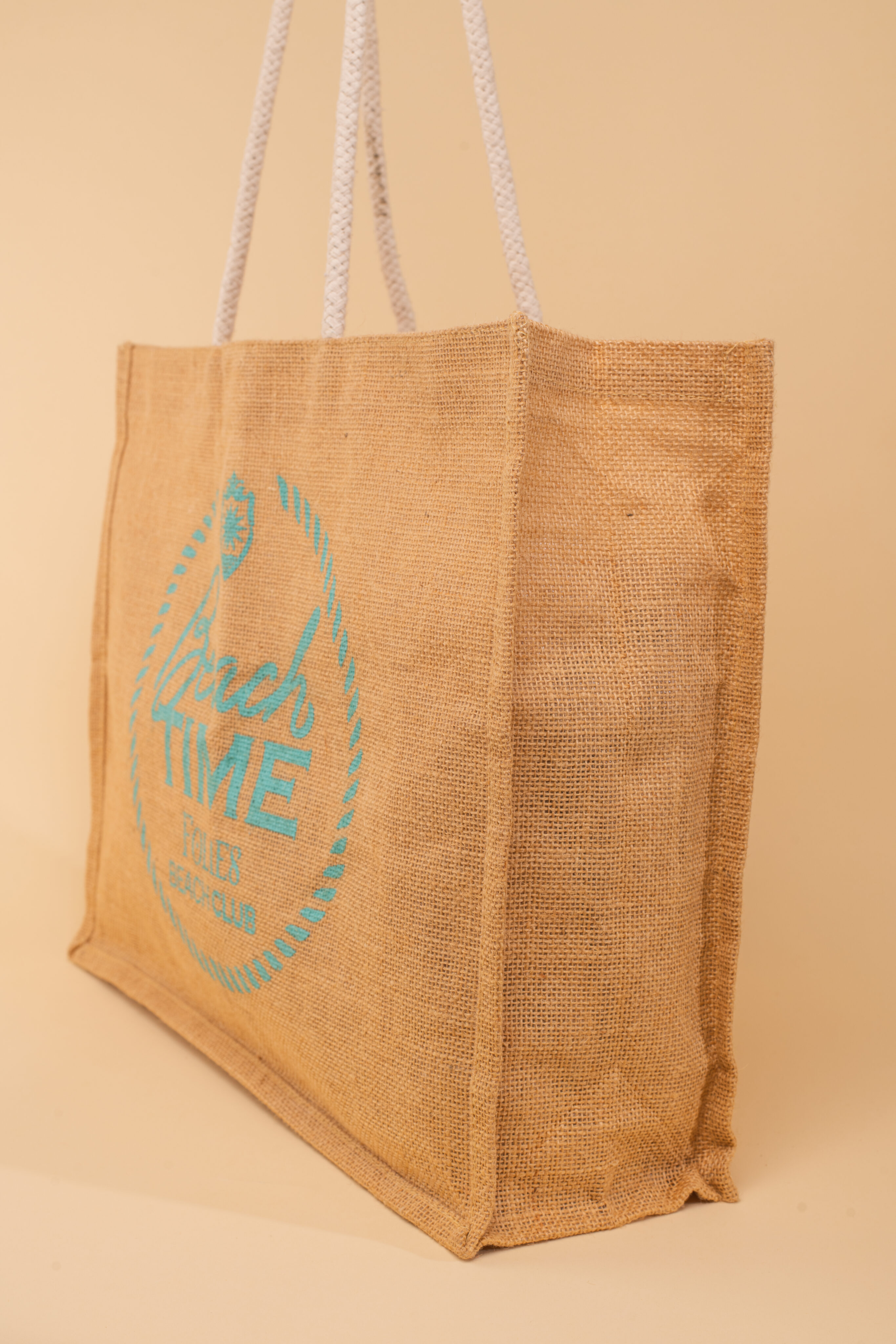 Cesta hecha con yute por la parte de fuera, con un forro protector interior, ideal para la playa ya que resiste al agua